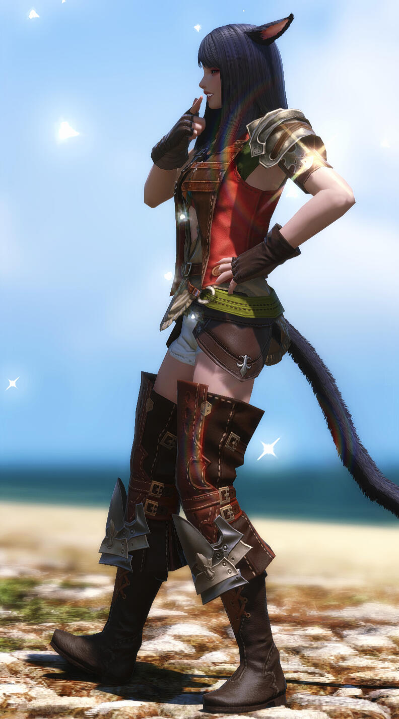 Ania's childhood was a simple, but happy one. Her parents, what little she remembers of them, were kind people. However their kindness couldn't shield her from the slavers who attacked her village and took whatever inhabitants they didn't kill. For months she sat with her kin in cages, terrified and unsure of their fate. As the oldest of the children present, she took it upon herself to ease their terror. When they finally stopped in Limsa she was separated from her kin and transported somewhere else. For days she traveled by caravan and through the slot in her crate she could see only sand until great stone towers pertruded from the horizon.In Garlean occupied Ala Mhigo she was sold into a brothel. All of those days she forcefully pushes to the back of her mind. When she thinks back to when her life truly began it was one fateful evening when a high ranking officer stopped by. It was decided she was old enough to entertain now and would begin paying off her expenses for living there. Desperate to leave her circumstances she rebelled against the person she was sent to and incapacitated them. Her escape halted by a single person who stood in the final doorway. She fought against him with her small kitchen knife, but he easily snatched her weapon away and watched her curiously. In vain she struggled against him, being pushed away every time she tried to move past him. With a single shove he pushed her onto the ground. The man had remained silent and expressionless until she finally glared up at him."You can stay on your back with the filth or you can come with me and have a purpose," he said holding the hilt of her knife out to her.Ania stood up, her legs still shaking from adrenaline, and took the knife from him. With a nod she followed after him into the dark. He trained her to be a spy, not for Garlemald, but for him. She learned to pry information for him whether it be through sweet words or by the edge of a blade. She cared little for the politics and obeyed him without question.For years she has spent her time reflecting others, mirroring their mannerisms and some quirks in their speech. Outwardly she is joyful, happy and bubbly. Truthfully she is nothing more than an empty shell, waiting for something to breathe life into her again.A year ago she was sent to Eorzea without reason and has received no further instruction. To fill the days she enjoys the quiet life she was robbed of waiting for her master to call on her once more
