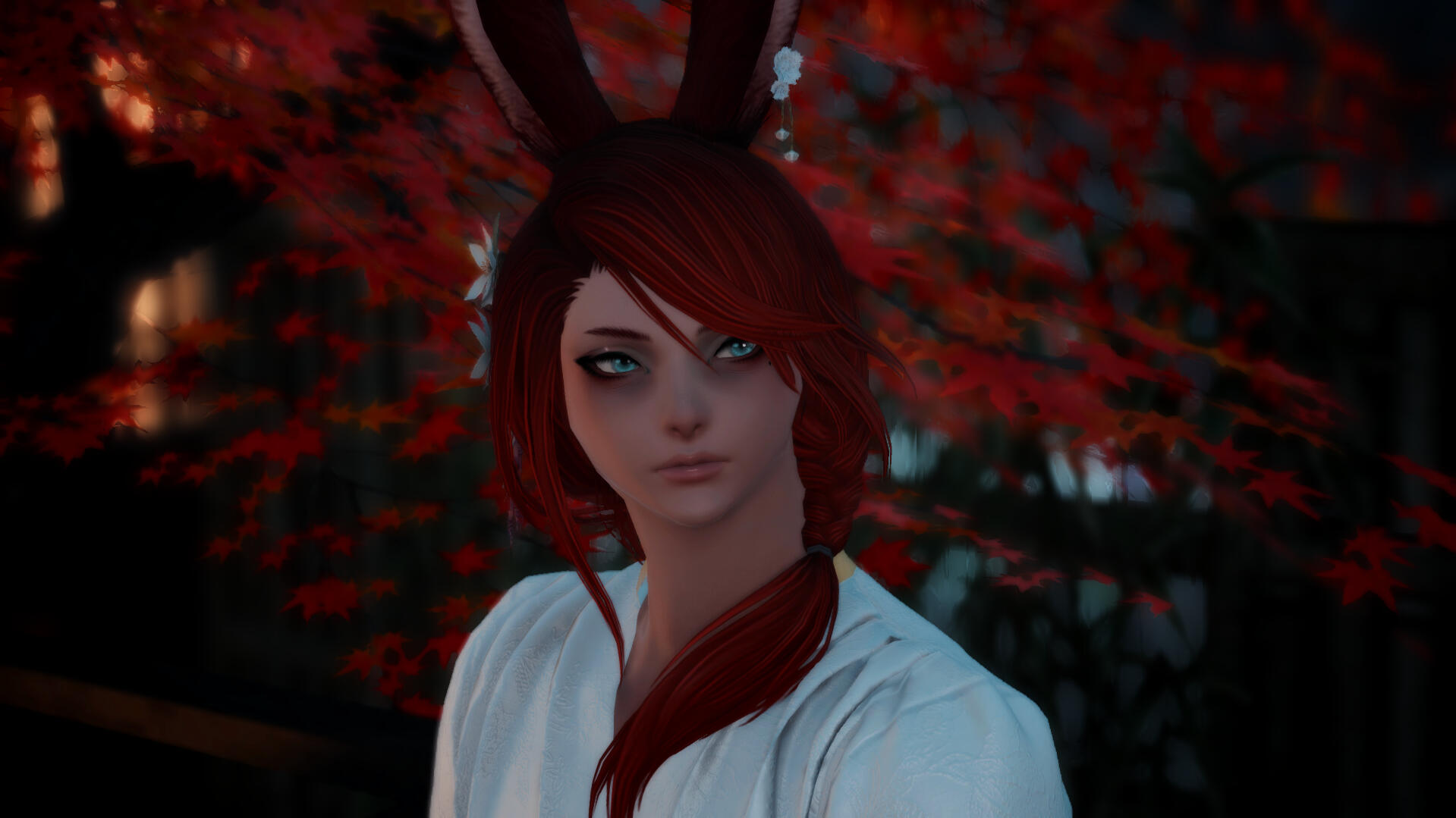 Akiko was the youngest of four, born into a wealthy Raen family. From a young age she was trained by her father in martial arts and swordplay. However as the only daughter she was spoiled by him and had little responsibility other than her training. Her mother held higher expectations of her and often encouraged her independence and education. While more strict, she gave her much attention and they spent their time together reading fairy tales and studying the stars.When she was ten her mother grew very ill and past away suddenly. With his wife's death, her father fell into a depression and left the overseeing of the affairs of their estate to her brothers. In a few years time he remarried and his new wife often came into conflict with his children. Akiko was often reprimanded for the smallest thing, unable to match her stepmother's expectations.Akiko had always cared little for the skills that made her family name famous; her indifference growing as she aged. While she had been taught the proper etiquette befitting a lady of her station, she rarely used it. Instead she would do as she pleased, running out at all hours of the night looking for entertainment on the streets of Kugane. She enjoyed her time free of her family's watchful eye, although they always had someone watching over her from afar.When she turned 23 her fun came to a grinding halt as she was summoned by her father. She protested the same as always and prepared to leave until the guards stepped in front of the doorway. When she turned to her father he rose from his chair and informed her:'You will no longer disgrace this family.'While she cares little for her family name, the disappointment from her father moved her to tears. With a grim face he informed her she was to be wed to a family of similar status to them. Her intended was known to her and by no means a bad man, she simply did not love him.She fell to her knees and begged him to reconsider, but he walked passed her. No longer was she allowed to leave her home as she pleased. Guards now followed her everywhere making it nearly impossible for her to sneak out. Under the guise of visiting her mother's grave she was allowed a few minutes of privacy, enough time for her to make a run towards the city.While she thought she had made it out of the city without being spotted, her brothers were waiting for her at the docks. Prepared to fight them, they handed her money to leave for Eorzea, promising to take care of her in secret if she consented to having a retainer. Not wanting someone to watch over her anymore she refused. Still, they gave her the money and she left on the next ship.Newly arrived from the Far East, Akiko knows nothing about the Eorzean culture or language. She spends her days wandering around, taking in the sights and spending her family's wealth as she pleases. To avoid being recognized anyone her family hires she cut her hair, getting the idea from one of her favorite fairy tales. However, there is always some hired hand out there watching over her.